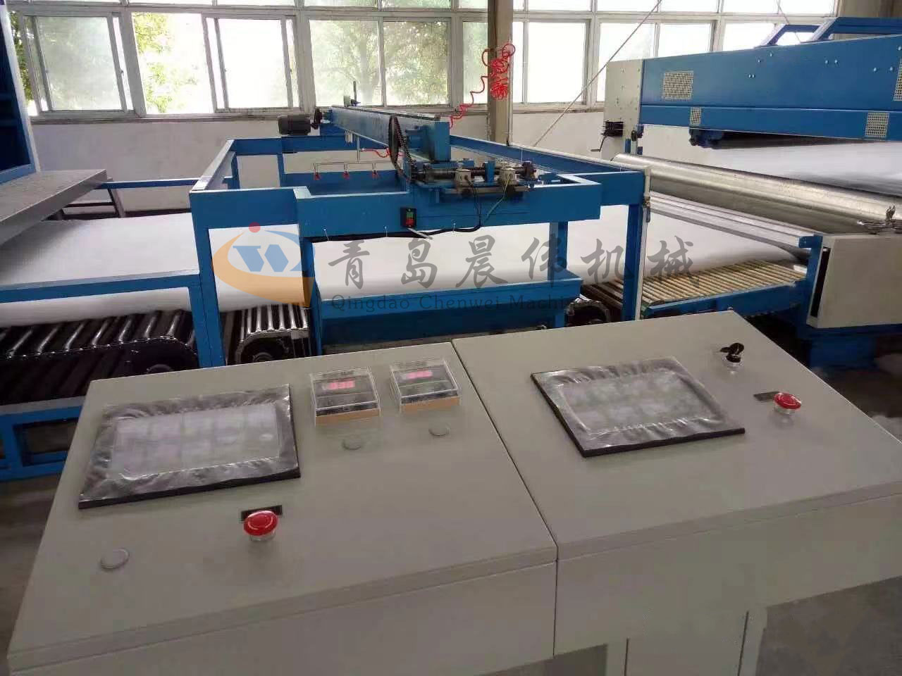 5. CWPW-鋪網(wǎng)機(jī):用于將梳理纖網(wǎng)通過(guò)移動(dòng)小車(chē)交叉折疊為所需幅寬和定量的多層纖網(wǎng),以供后道工序使用。鋪網(wǎng)輥采用特殊結(jié)構(gòu),加裝壓網(wǎng)輥和導(dǎo)流板,不飄網(wǎng)不起皺,五只大功率電機(jī)精確控制各部件的運(yùn)動(dòng),電動(dòng)輸出簾高度調(diào)節(jié)裝置