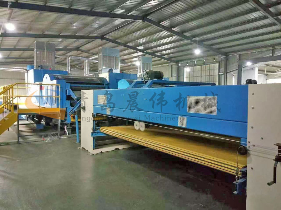5. CWPW-鋪網(wǎng)機:用于將梳理纖網(wǎng)通過移動小車交叉折疊為所需幅寬和定量的多層纖網(wǎng),以供后道工序使用。鋪網(wǎng)輥采用特殊結(jié)構(gòu),加裝壓網(wǎng)輥和導(dǎo)流板,不飄網(wǎng)不起皺,五只大功率電機精確控制各部件的運動,電動輸出簾高度調(diào)節(jié)裝置